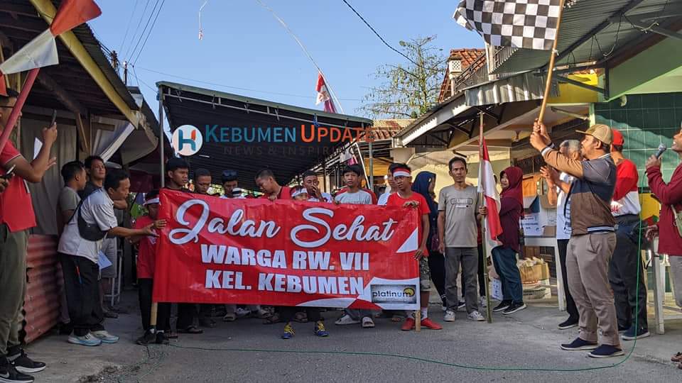 “Hari ini adalah pelaksanaan jalan sehat okeh rukun warga yang terakhir di tingkat Kelurahan Kebumen. Minggu lalu RW lain sudah melaksanakannya. Karena ini melalui Jalan Soekarno Hatta, maka berhati-hati ketika melintas,” kata Dimas Bayu Setiawan.