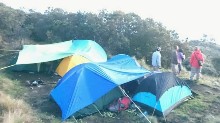 Sekitar pukul 20.00 WIB merasa agak mendingan, saya keluar tenda. Sementara Okta, Dira, dan Gun gantian masuk tenda. Saya memilih duduk lalu rebahan di luar tenda, beratapkan flysheet, karena memang kapasitas tenda yang saya bawa hanya untuk 3 orang.