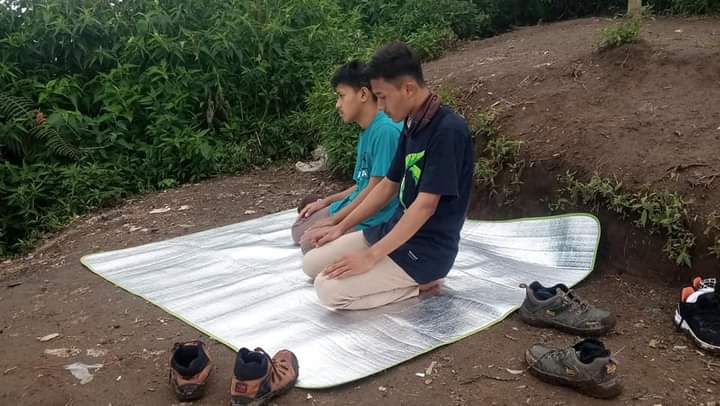Kami mendirikan tenda yang dibuat saling berhadapan. Cuaca sore itu sangat mendukung, cerah. Berbeda saat kami berjalan di sepanjang jalur antara Lembah Manding sampai Pos Mata Air, gerimis menemani perjalanan. Tenda telah berdiri, dan waktu telah masuk azan Magrib. Maka satu per satu dari kami mulai mendirikan salat.