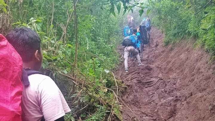 Di tengah perjalanan, kami bertemu dengan pendaki yang berasal dari Bandung dan Purwakarta. Pada beberapa momentum, kami saling mendahului. Yang kami tahu, rombongan mereka ada empat perempuan dan beberapa laki-laki.