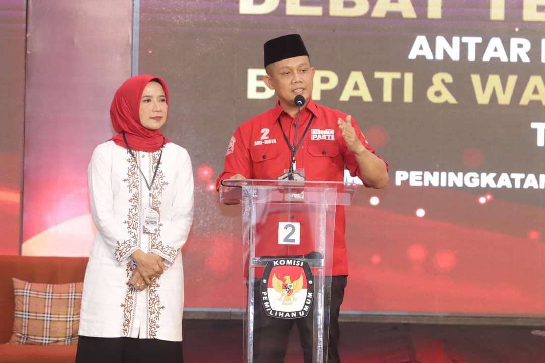 Paslon 02 Arif-Rista menjawab pertanyaan dari moderator. (Foto: istimewa)