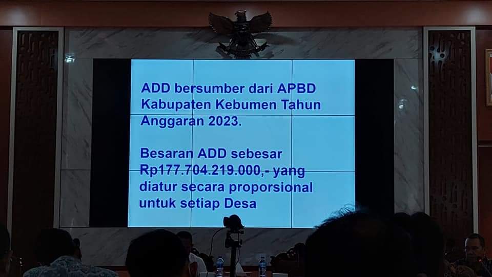 Sementara itu, Kepala Dispermades Kebumen, Cokro Aminoto menjelaskan bahwa ADD bersumber dari APBD. Besaran ADD pada 2023 sebesar Rp177.704.219.000,00 yang sudah diatur secara proporsional untuk setiap desa di Kebumen.