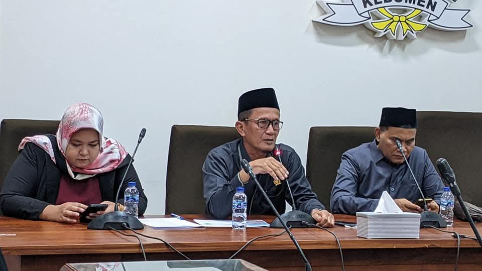 Ketua DPRD Kebumen H Saman (tengah) didampingi Wakil Ketua Fitria Handini dan Solatun saat jumpa pers mengenai penetapan APBD 2025 Kabupaten Kebumen. (Foto: Hari)