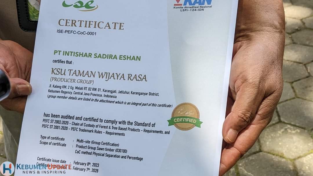 KARANGANYAR (KebumenUpdate.com) – Sebagai koperasi yang bergerak di bidang penjualan kayu bersertifikat, Koperasi Serba Usaha Taman Wijaya Rasa (Kostajasa) telah mendapatkan sertifikat berskala internasional sejak tahun 2009 yaitu Forest Stewardship Council (FSC).