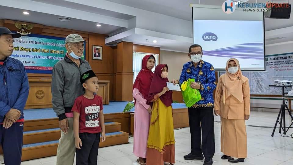 Direktur RSDS Kebumen dr Arif Komedi MSc secara simbolis menyerahkan bingkisan kepada penerima program RSDS Berbagi. (Foto: Hari)