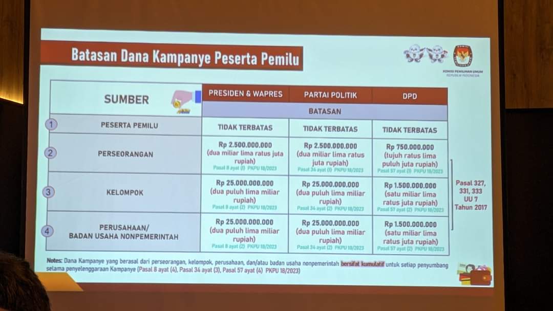 Batasan dana kampanye peserta pemilu. (Foto: Hari)