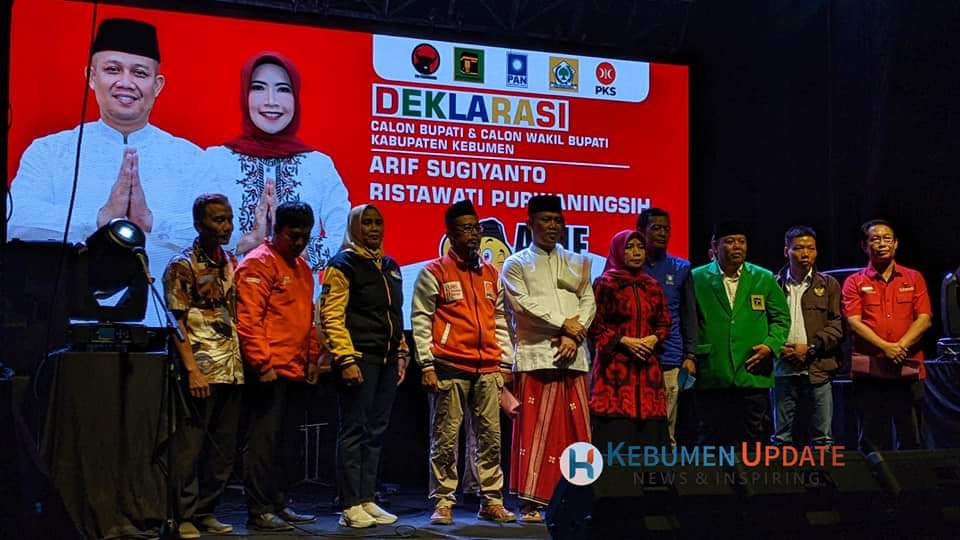 KEBUMEN (KebumenUpdate.com) – Secara bersama-sama, lima partai politik pengusung Calon Bupati dan Wakil Bupati Kebumen Arif Sugiyanto-Ristawati Purwaningsih (PDI Perjuangan, PPP, PAN, Golkar, dan PKS) menggelar deklarasi di Posko Pemenangan atau Rumah Rakyat Arif-Rista, Minggu 25 Agustus 2024.