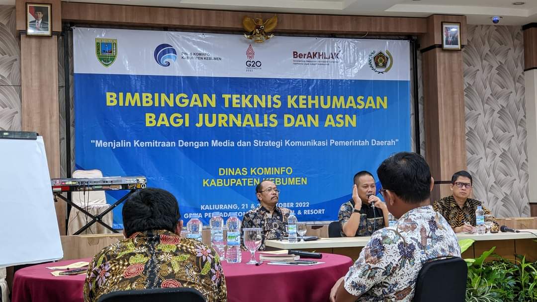 Setidaknya poin tersebut menjadi salah satu materi yang disampaikan dalam kegiatan Bimbingan Teknis Kehumasan bagi Jurnalis dan ASN Diskominfo Kabupaten Kebumen pada Jumat, 21 Oktober 2022.