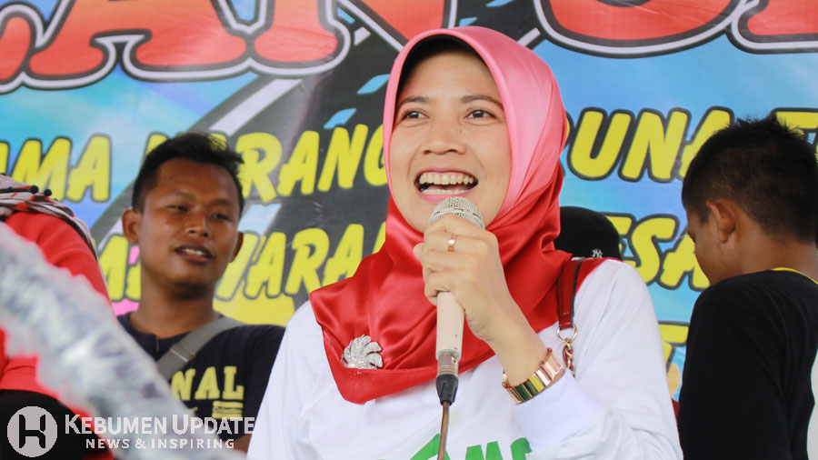 Ristawati sedang menyampaikan sambutan dalam acara jalan sehat. (Foto: Padmo-KebumenUpdate)