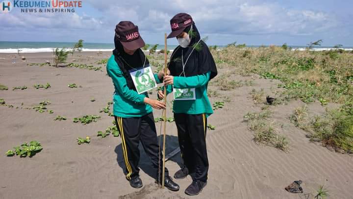 KLIRONG (KebumenUpdate.com) – Organisasi lingkungan dari SMA N 1 Kebumen atau disebut Lingkungan Hidup Club (LHC), melakukan aksi tanam pohon dengan jenis cemara laut di pesisir Kawasan Kaliratu, Desa Tanggulangin, Kecamatan Klirong pada Minggu, 24 Juli 2022.