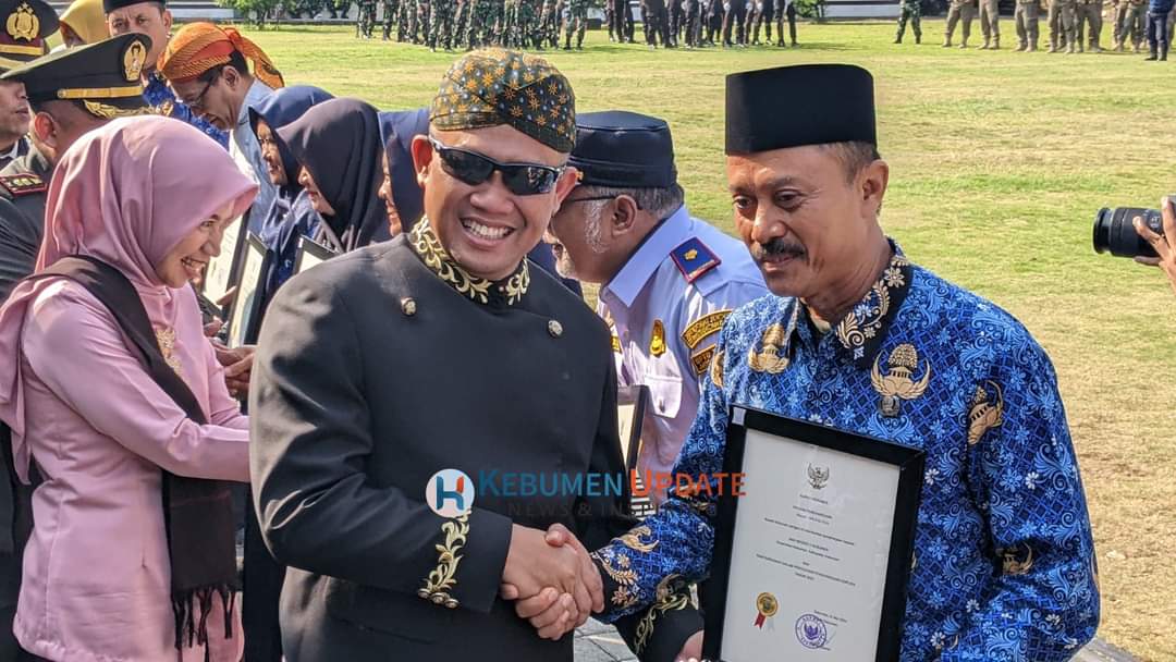Bupati serahkan Piagam Penghargaan Partisipasi Perolehan Adipura untuk Kepala SMAN 2 Kebumen. (Foto: Hari)