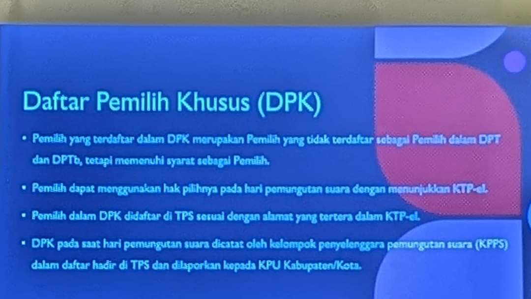 Tampilan layar presentasi kegiatan persiapan pemutakhiran data pemilih menjelang Pemilu 2024. (Foto: Hari)